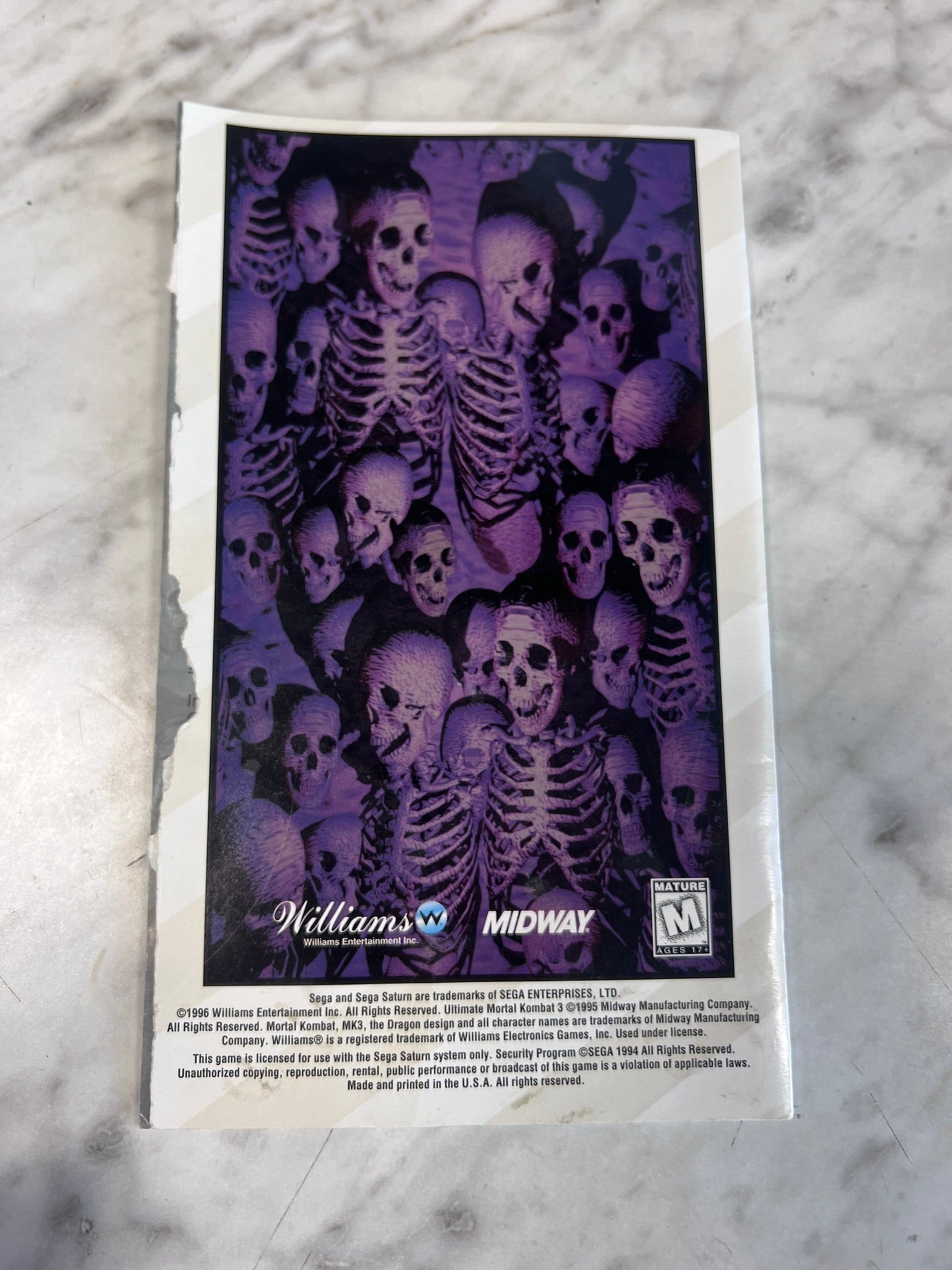 Ultimate Mortal Kombat 3 Sega Saturn MANUAL ONLY (Reg card torn out) MO12726