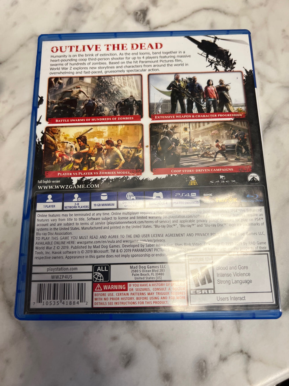 World War Z PS4 Playstation 4 Game Case ONLY CO52325