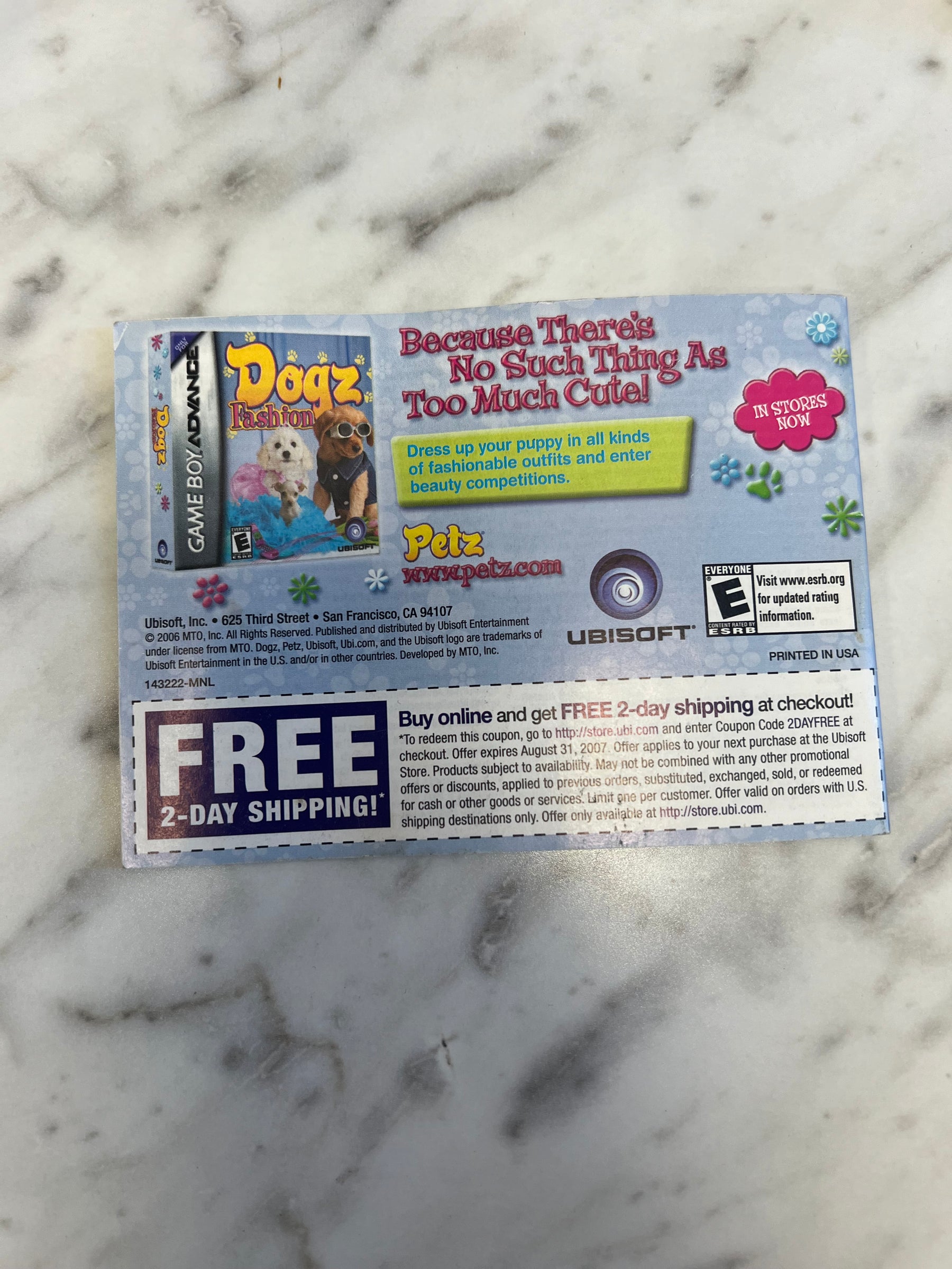 Dogz 2 for Gameboy Advance Manual ONLY DU92724