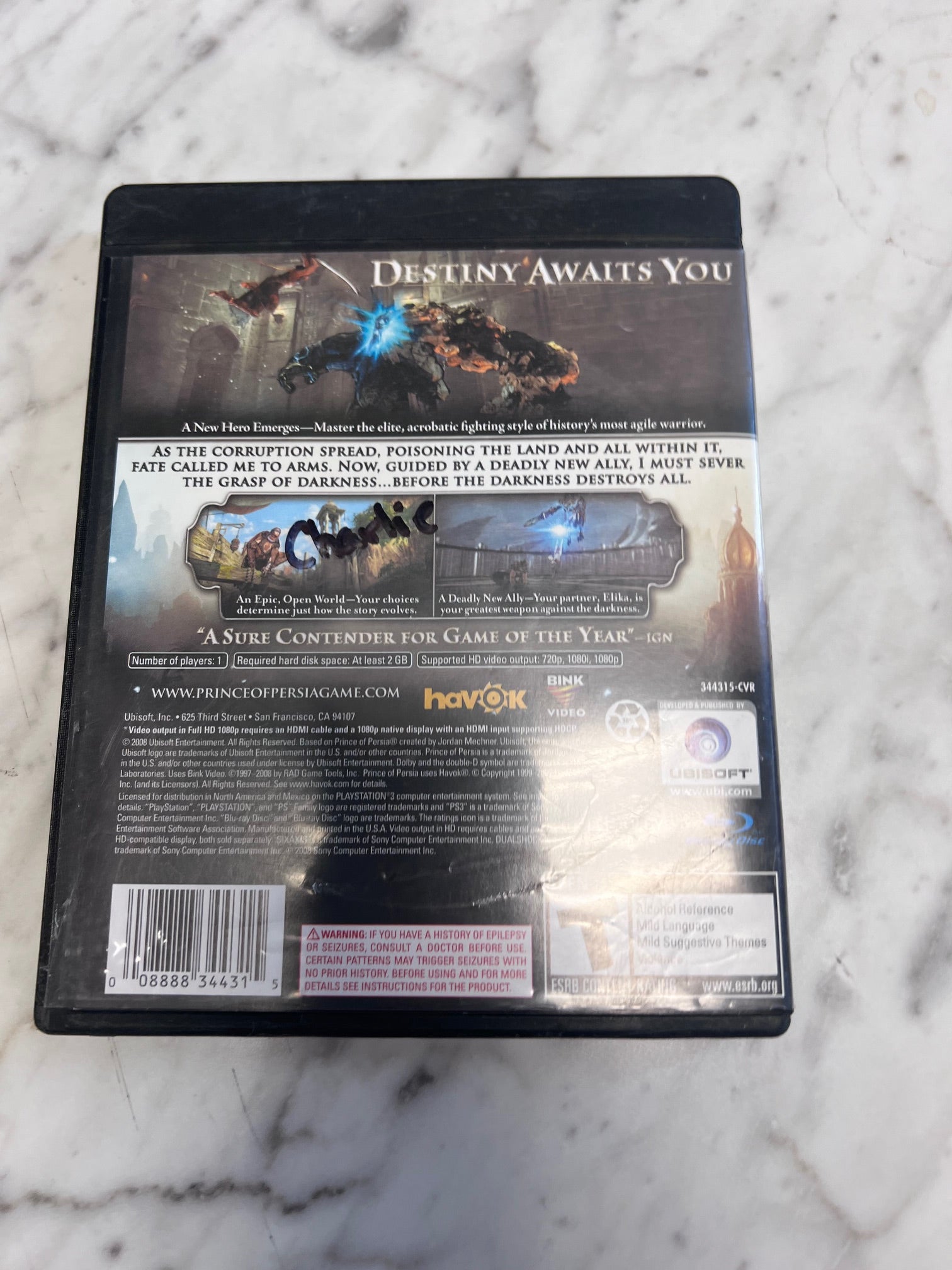 Prince of Persia PS3 Playstation CASE ART & MANUAL ONLY in GENERIC CASE CO92325