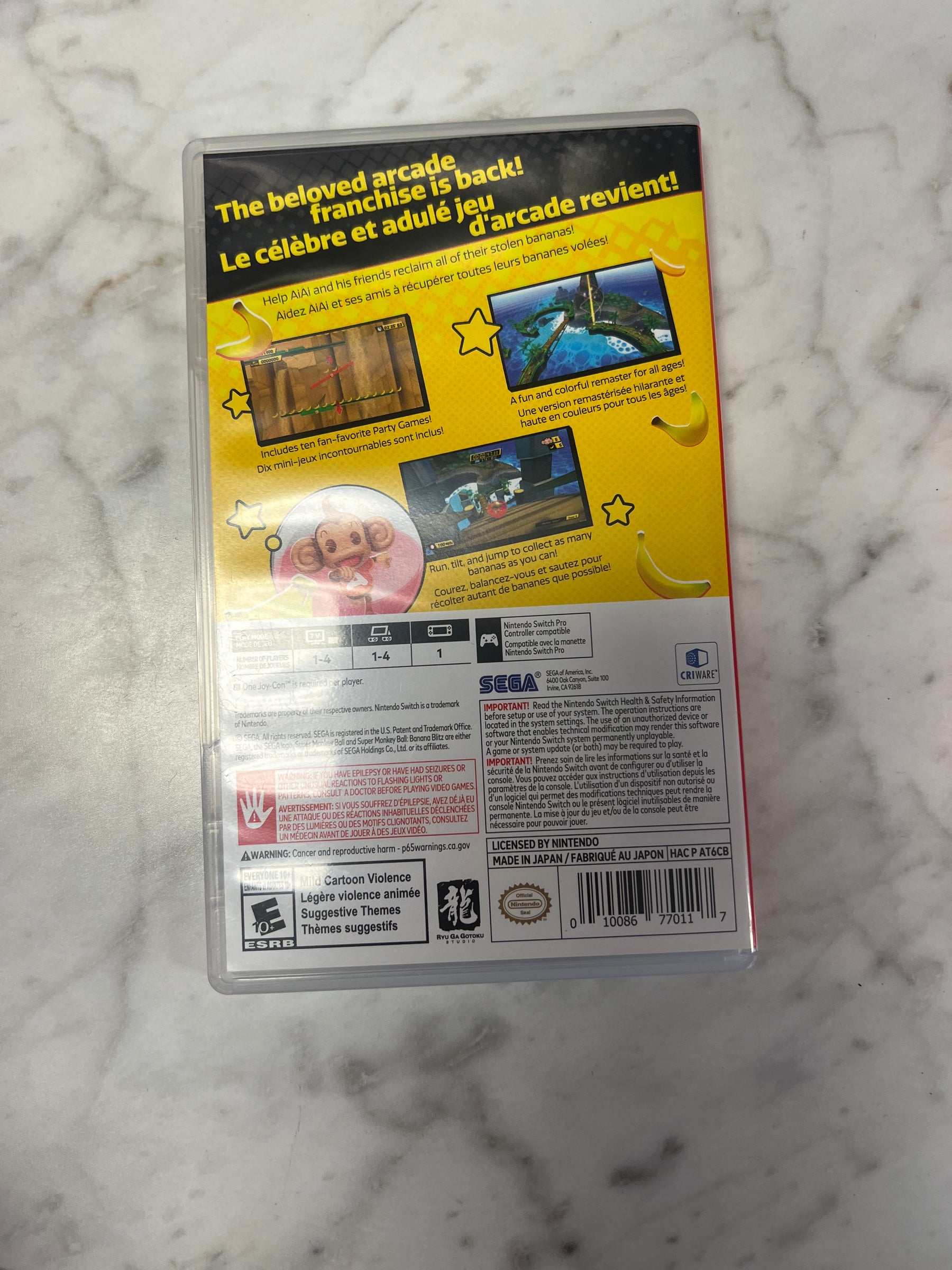 Super Monkey Ball Banana Blitz HD Nintendo Switch CASE ONLY CO92524